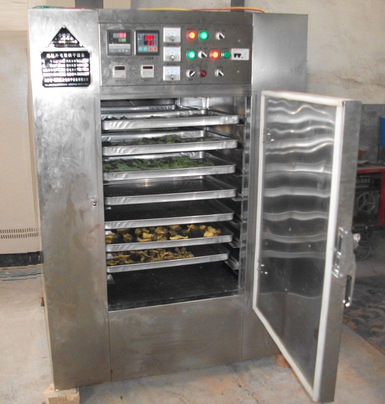 首先要建立烤房,可根據(jù)金銀花加工量確定烤房大小,可采用回籠炕式火道烘烤,也可直接放兩個爐子烘烤,在房頂留天窗,南墻上部安一排風(fēng)扇,北墻離地面0.3米處設(shè)一對進(jìn)氣孔。房內(nèi)兩側(cè)各設(shè)擺放托盤的角鐵架或木烘架一個,層距要大于10厘米,以利于排濕。上花前先預(yù)烘,去除室內(nèi)潮氣,提高溫度,當(dāng)室內(nèi)溫度上升至35℃時即可裝花,花厚度保持在2~3厘米,將托盤整齊地排放在烘干架上,關(guān)閉門窗,堵塞進(jìn)氣孔,進(jìn)行烘烤。為使室內(nèi)上下受熱均勻,每個烤房內(nèi)放置一個車間用的大型落地扇,不停扇風(fēng)。裝好花后,要立即增加火勢,當(dāng)室溫提高到40℃時(一般6小時),保持室溫在40℃~45℃,待花的水分大部分排除(如達(dá)不到八成干,需延長控溫40℃~45℃的時間)時封嚴(yán)進(jìn)氣孔,把室溫提為55℃~60℃,金銀花即可迅速干燥。整個烘干過程一般需歷時18小時。出烤房前1小時左右陸續(xù)減火,打開進(jìn)氣孔進(jìn)行通風(fēng)換氣。烘干金銀花時,應(yīng)注意三個關(guān)鍵問題:一是層托盤一定要距離爐口1米以上,1.4米以上;二是一定要在排濕期間打開進(jìn)氣孔、天窗和排風(fēng)扇,使烤房內(nèi)形成對流;三是要待金銀花八成干時再加溫,否則可能造成黑頭。